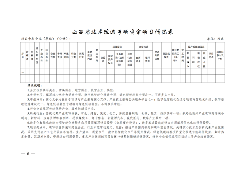 关于组织开展山西省技术改造专项资金项目申报工作的通知